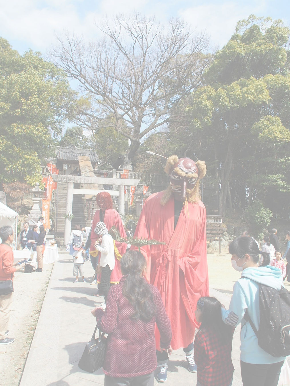 背後から忍び寄って猩々にいたずらをしたり、猩々をからかって追いかけさせたり― 怒った猩々は子供たちを追いかけ、子供たちはたたかれまいと逃げ回って過ごすのがお祭りの光景でした。猩々にたたかれた子供は健康に育つといわれています。